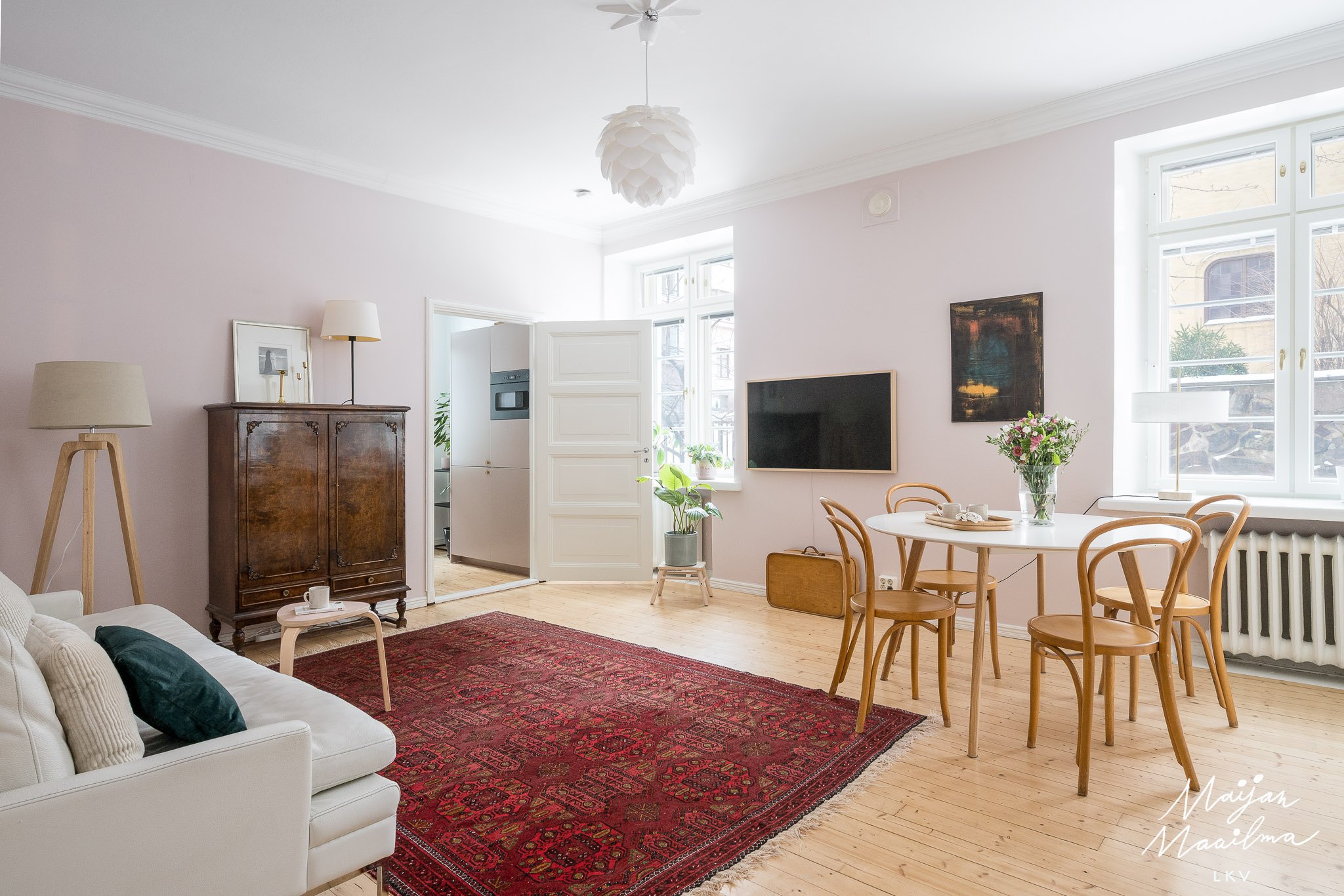 Huonekokoonpano 3 h, avokeittiö, kph/wc ja lasitettu parveke