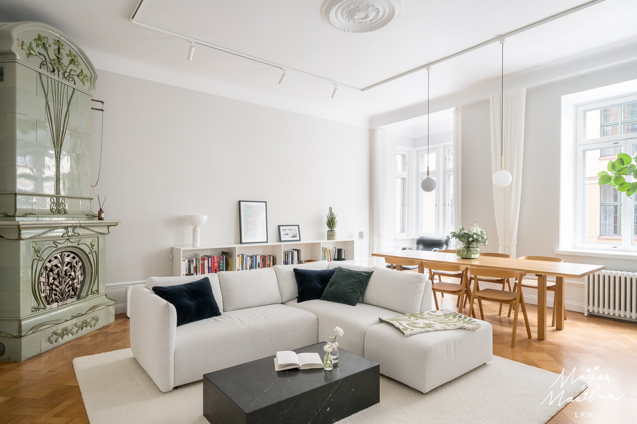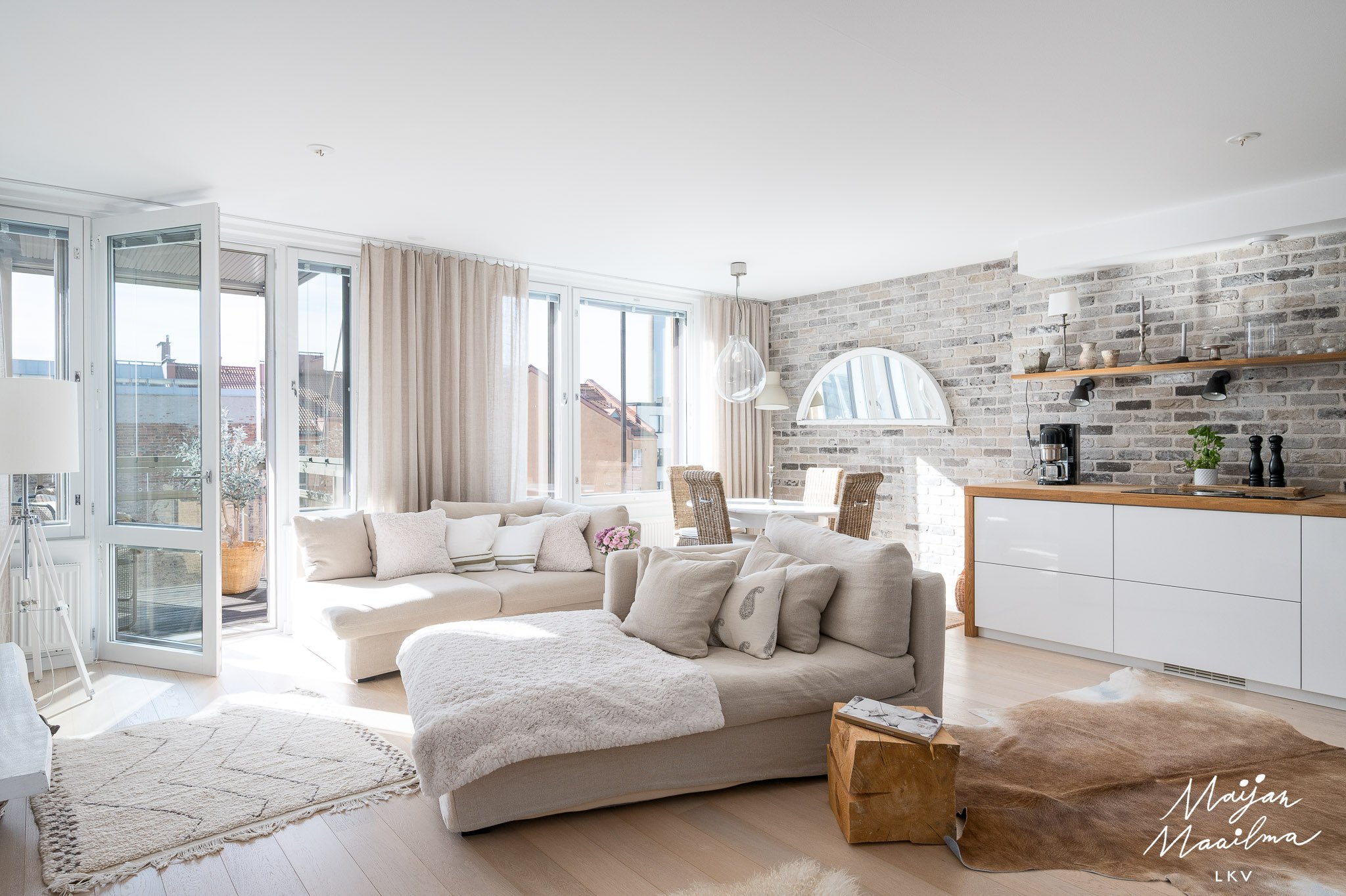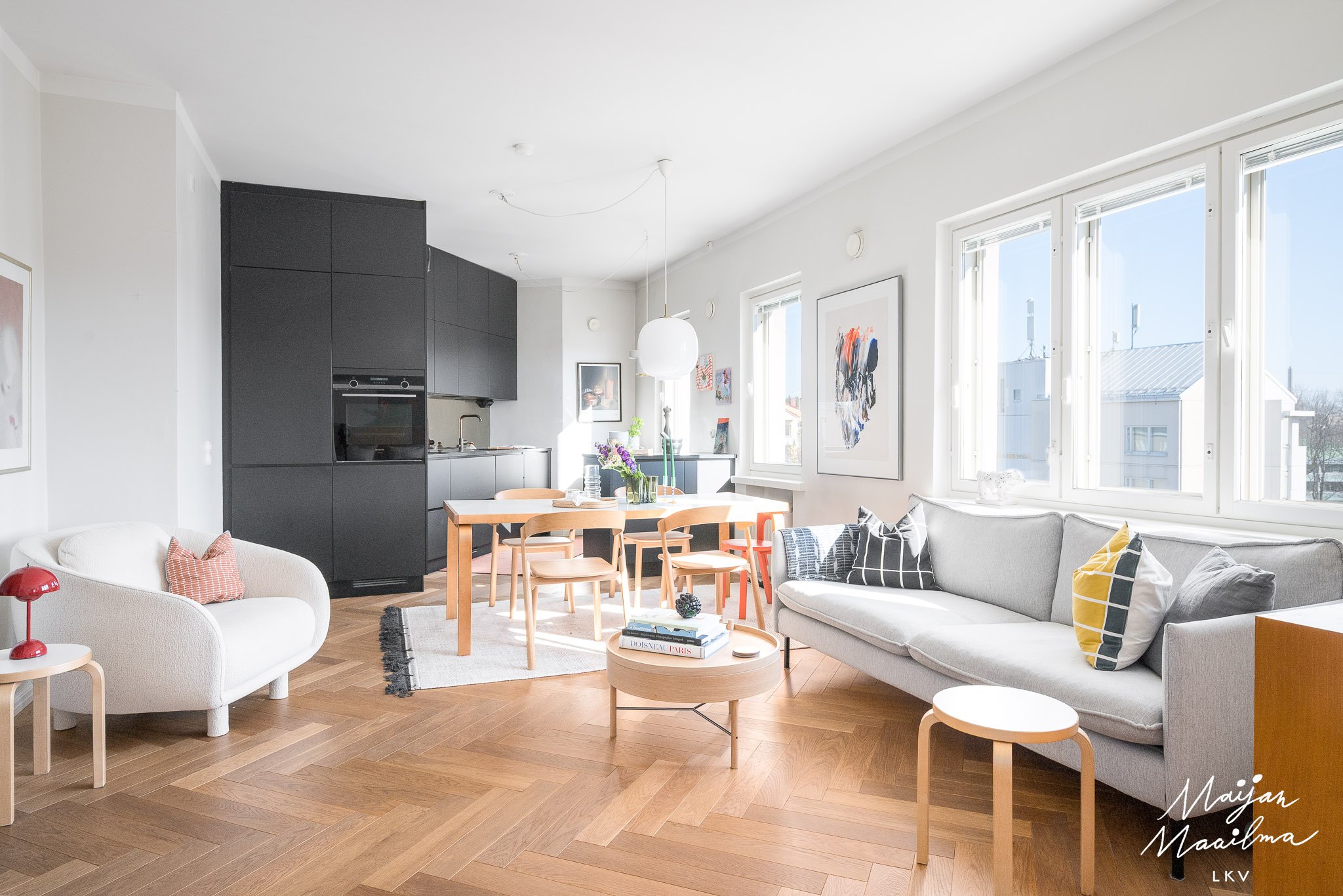 Huonekokoonpano 2 h, avokeittiö, kph/wc ja lasitettu parveke
